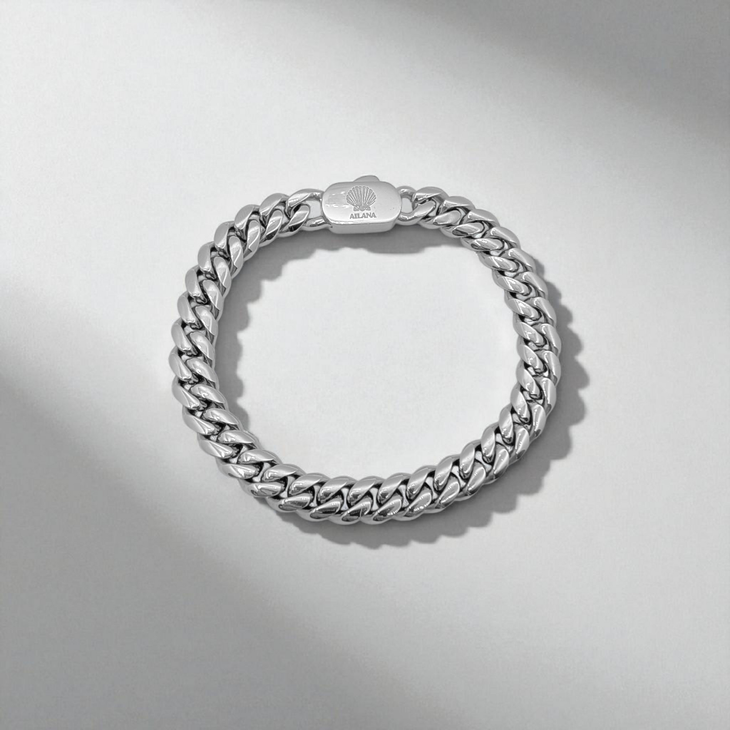 Esta pulsera destaca por sus eslabones de 8 mm, elaborada en acero inoxidable que garantiza durabilidad y un brillo elegante. Su diseño robusto ofrece un estilo sofisticado y resistencia frente al desgaste diario, ideal para quienes buscan una pieza que combine resistencia y exclusividad.