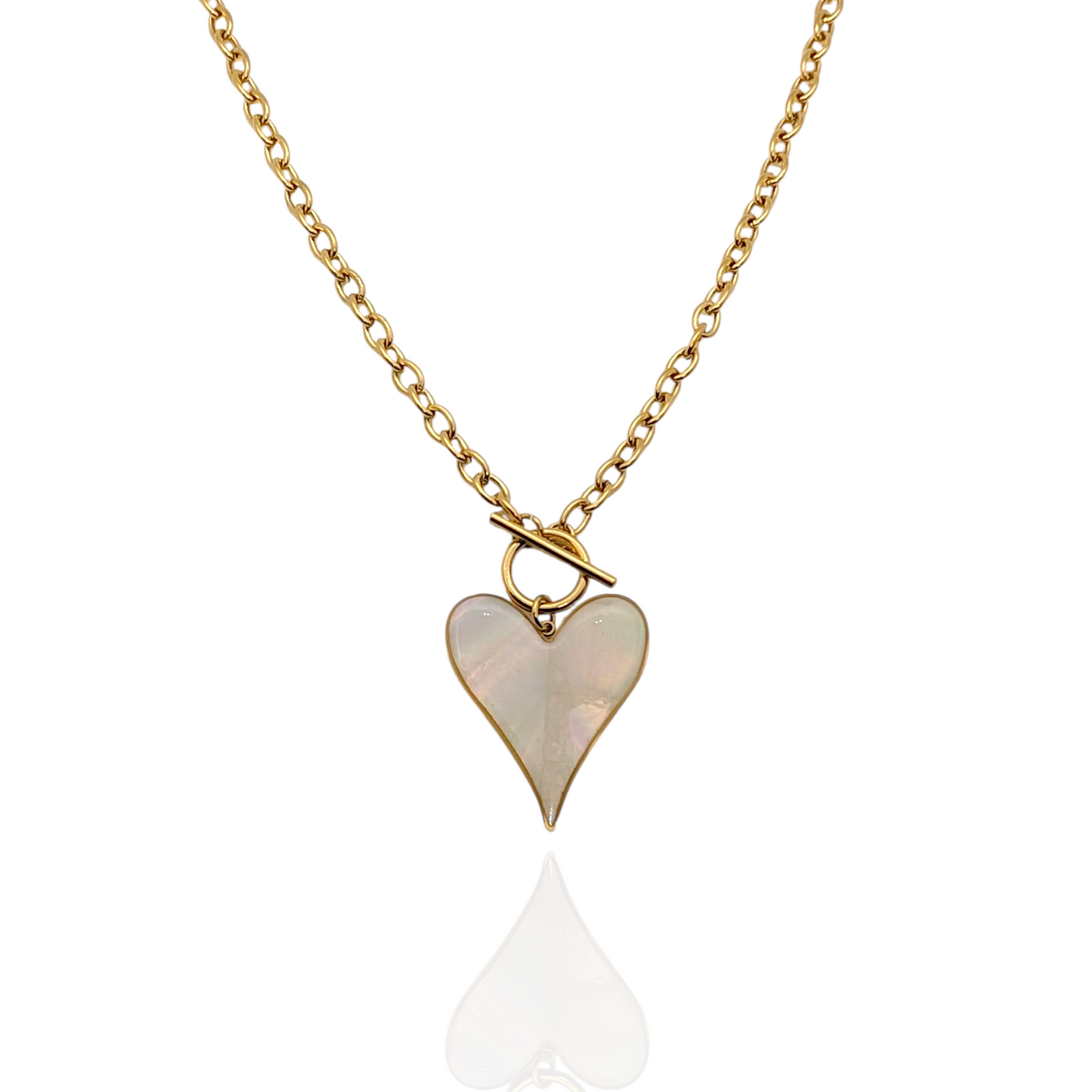 Colgante de corazón, acabado perlado proporciona un brillo suave y atemporal que complementa cualquier estilo personal. Una declaración de elegancia clásica que trasciende las tendencias.